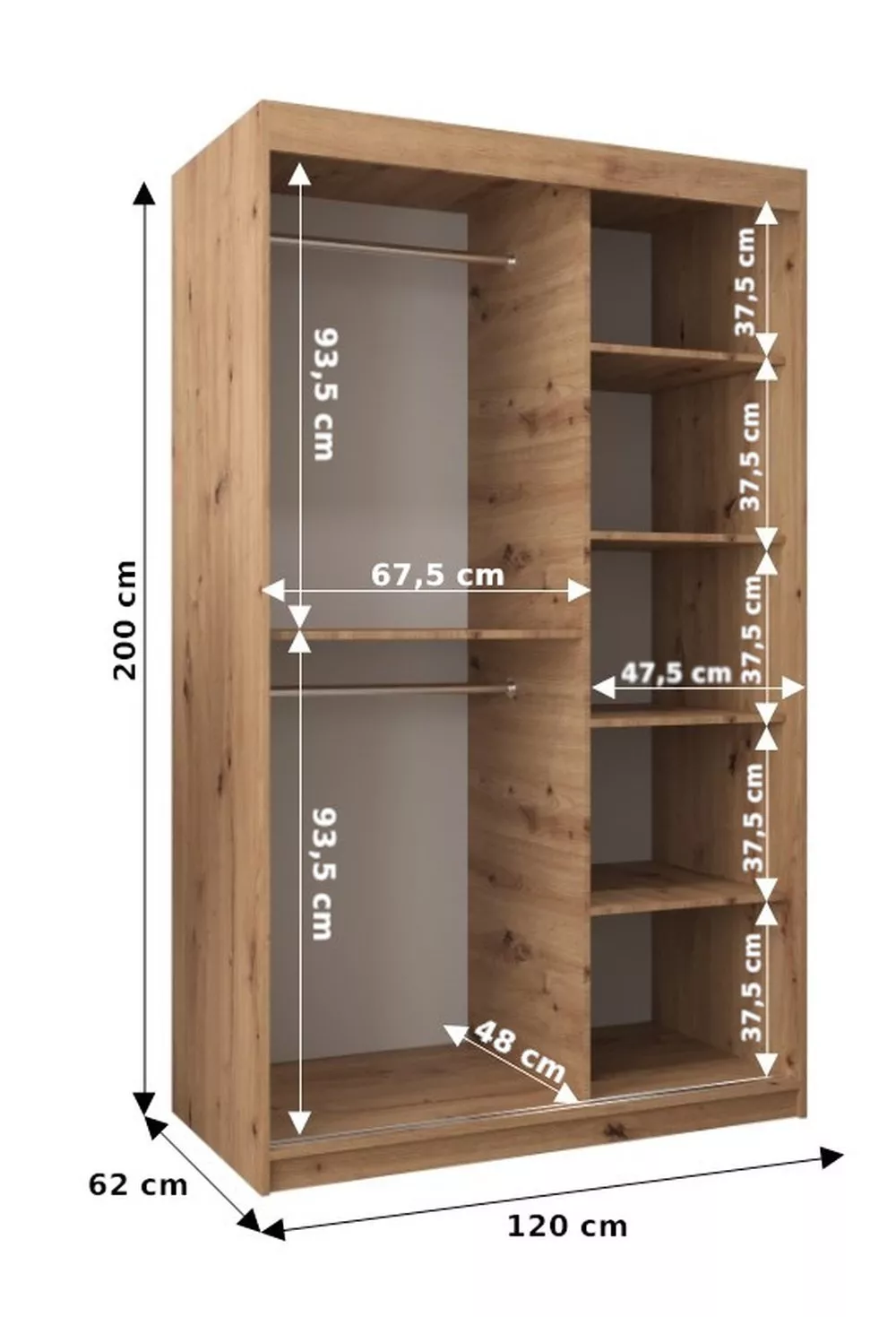 Kleiderschrank ENNI – Breite 120 cm, Eiche artisan / schwarz
