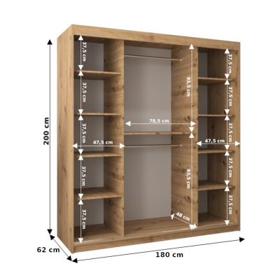 Spiegel-Kleiderschrank ADELA – 180 cm, schwarz / Eiche artisan