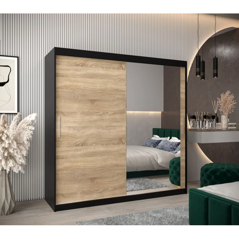 Schwebetürenschrank mit einer Breite von 200 cm TIMEA 2 – Schwarz / Eiche Sonoma