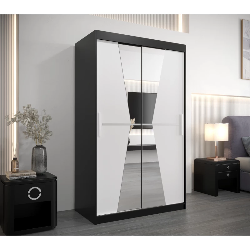Kleiderschrank mit Spiegeln MILANA – Breite 120 cm, schwarz / weiß