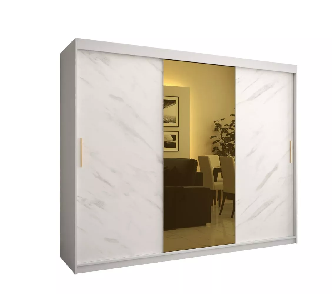 Designer-Kleiderschrank mit goldenem Spiegel MADLA 1 – Breite 250 cm, Weiß