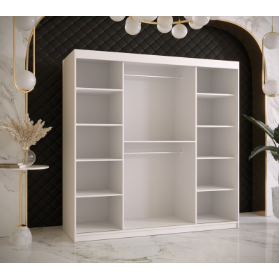 Der Kleiderschrank mit Schiebetüren RAISA kann jedes Schlafzimmer oder jeden Flur ergänzen. Die Innenaufteilung besteht aus tiefen Regalböden und einer Garderobenstange, die eine einfache Trennung der Alltagsgegenstände ermöglicht.