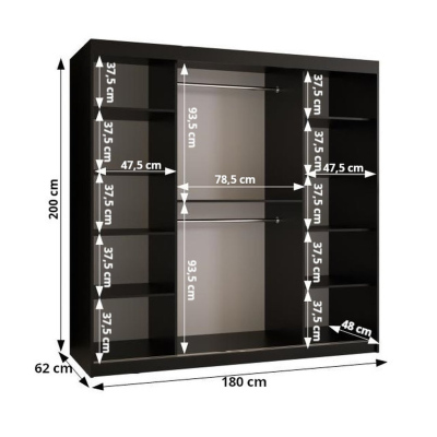 Kleiderschrank RAISA 2 – Breite 180 cm, weiß / schwarz