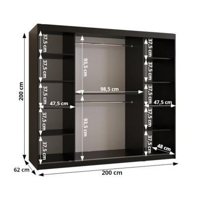 Der Kleiderschrank mit Schiebetüren RAISA kann jedes Schlafzimmer oder jeden Flur ergänzen. Die Innenaufteilung besteht aus tiefen Regalböden und einer Garderobenstange, die eine einfache Trennung der Alltagsgegenstände ermöglicht.