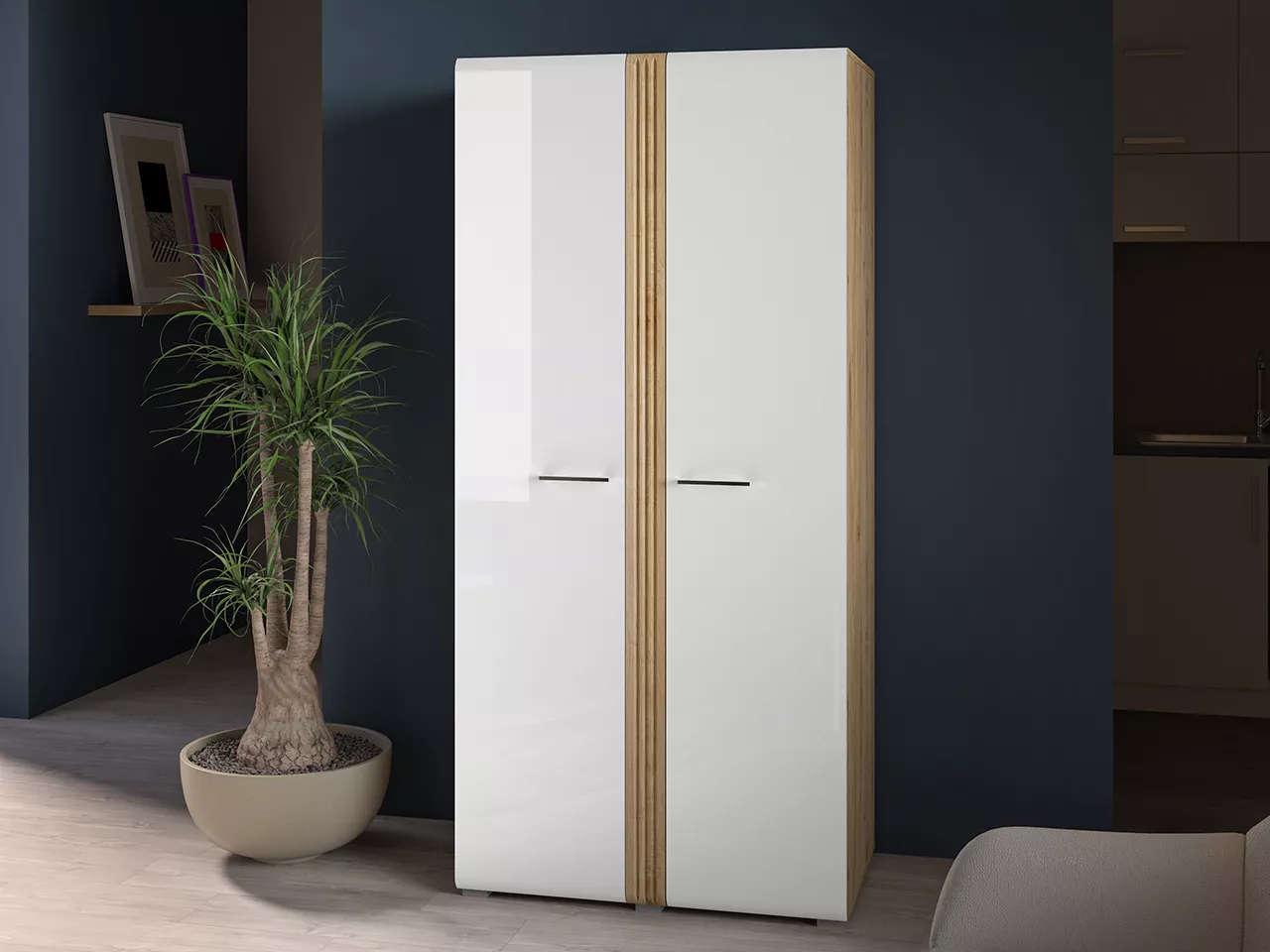 Zweitüriger Kleiderschrank ALIZA – Breite 92 cm, Castello-Eiche / weiß