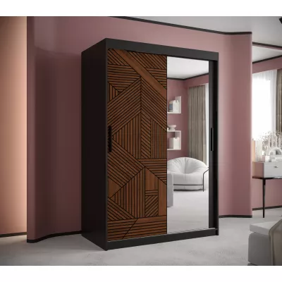 Schrank mit Spiegel MADELEIN 3 – Breite 120 cm, Schwarz + Nussbaum