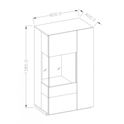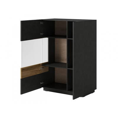 Hohe Kommode mit verglastem Teil SHADI links, weiß + Beton