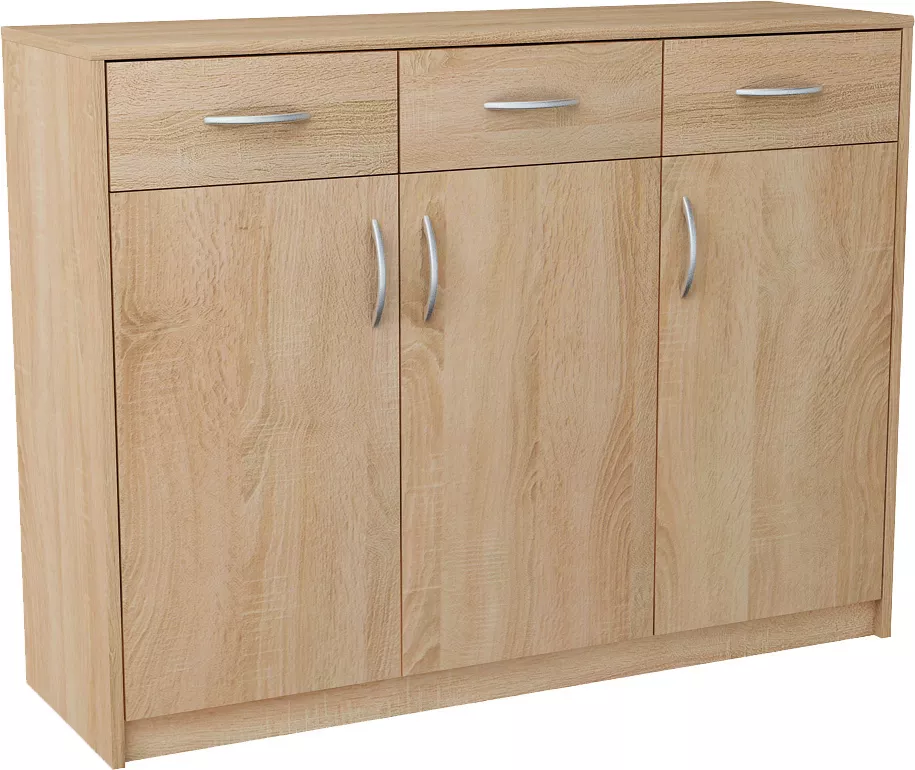 Die kombinierte Kommode IBOJA besticht durch ihr schlichtes Design. Die Kommode umfasst 3 geräumige Schränkchen und 3 Schubladen. Das Massivholz imitierende Dekor ist in sehr beliebten Farbtönen erhältlich.