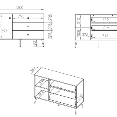 Die kombinierte Kommode MADO sorgt zusammen mit anderen Teilen aus dem MADO-System für einen modernen Look in Ihrem Wohnzimmer. Sie verfügt über 3 Schubladen und ein Regal hinter der Tür.