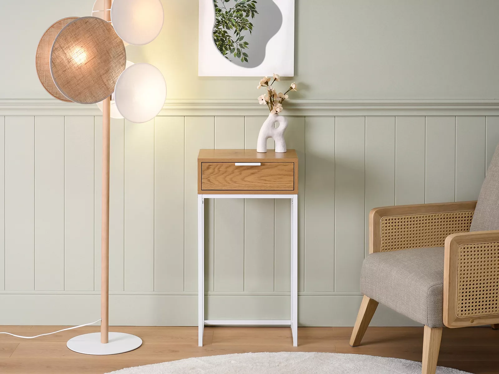 Schmaler Konsolentisch NIRAI – weiß/Eiche
