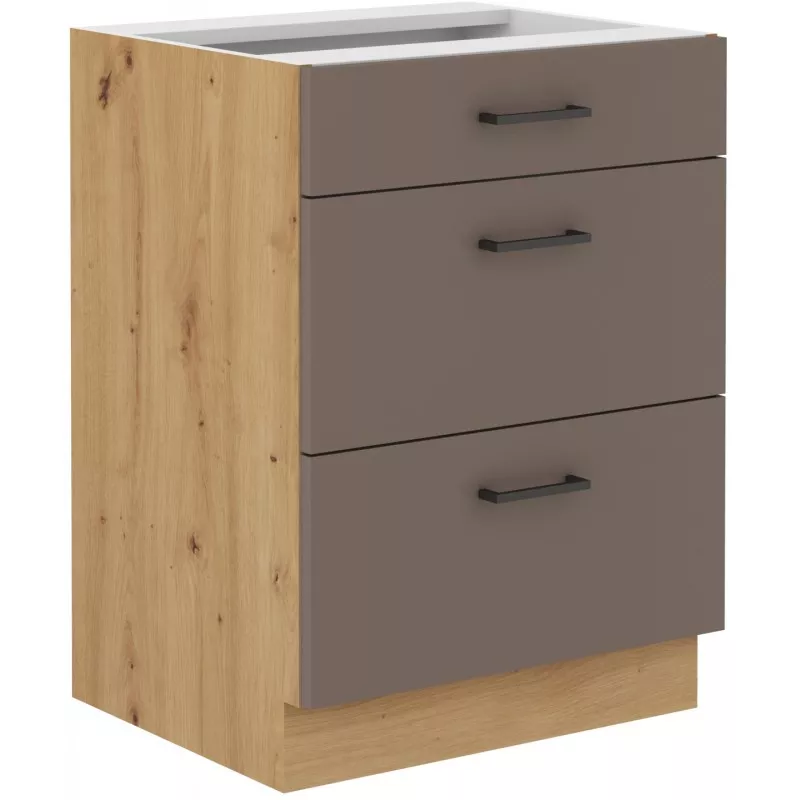 Schubladenschrank BALIJA – Breite 60 cm, trüffelgrau / Eiche Artisan
