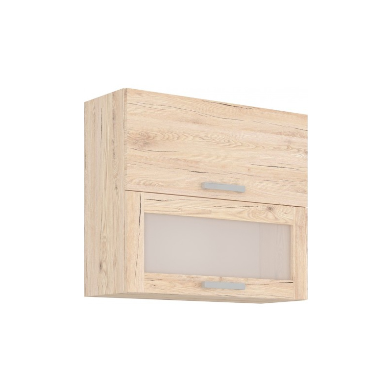 BERIT-Küchenschränke werden Ihr Herz erwärmen. Die gesamte Kollektion ist in hellen, aber warmen Farben gehalten. Dies ist ein Angebot für Menschen, die einen natürlichen Look lieben. Eichenholzdekor verleiht dem Raum eine gemütliche Atmosphäre. Der Schrank verfügt über 2 Türen, die sich durch Anheben öffnen lassen. Die untere Tür wird durch dekoratives Glas ergänzt. Er eignet sich ideal zur Aufbewahrung von Gläsern, Gewürzbehältern oder anderen Küchenutensilien. Kunststoffgriffe ermöglichen eine bequeme Nutzung des Schranks.