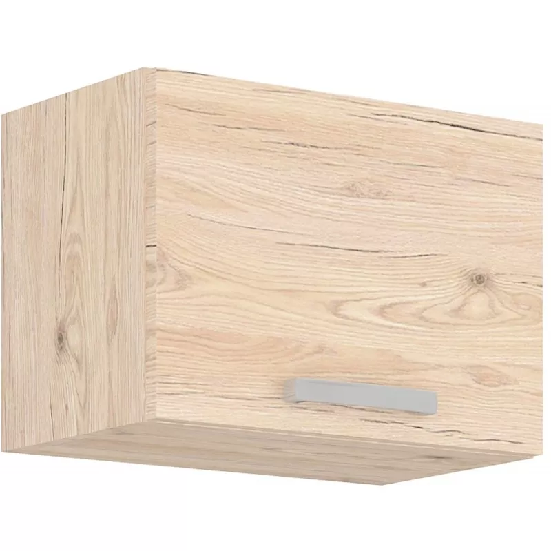 Küchenschränke von BERIT werden Ihr Herz wärmen. Die gesamte Kollektion ist in hellen, aber warmen Farben gehalten. Dies ist ein Angebot für Menschen, die einen natürlichen Look lieben. Eichenholzdekor verleiht dem Raum eine gemütliche Atmosphäre. Alles, was Sie brauchen, wie Schwämme oder Streichhölzer, können Sie im Hängeschrank mit Flügeltüren verstauen. Das Innere des Schrankes ist Weiß matt.