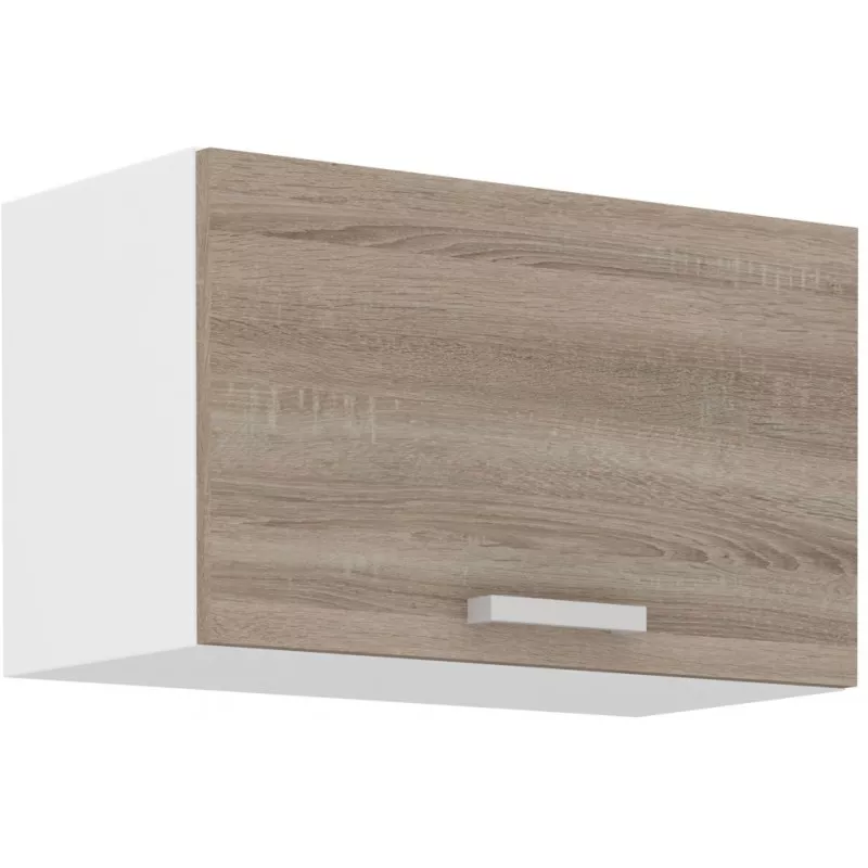 DAGA-Küchenschränke werden Ihr Herz erwärmen. Dies ist ein Angebot für Menschen, die einen natürlichen Look lieben. Das Eichenholzdekor verleiht dem Raum eine gemütliche Atmosphäre. Im Hängeschrank mit Flügeltüren können Sie alles Notwendige verstauen, z. B. Schwämme oder Streichhölzer. Der Korpus des Schrankes ist in mattem Weiß gehalten.