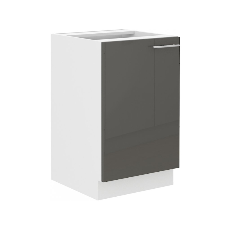 Der Unterschrank für die Küche aus dem Sektorsystem LAJLA passt in jede Küche und nutzt jeden Teil des Raumes perfekt aus. Der Korpus der Möbel ist in Weiß gehalten. Die Türen sind auf Scharnieren montiert und schließen geräuschlos. Griff und Sockel sind im Preis inbegriffen.