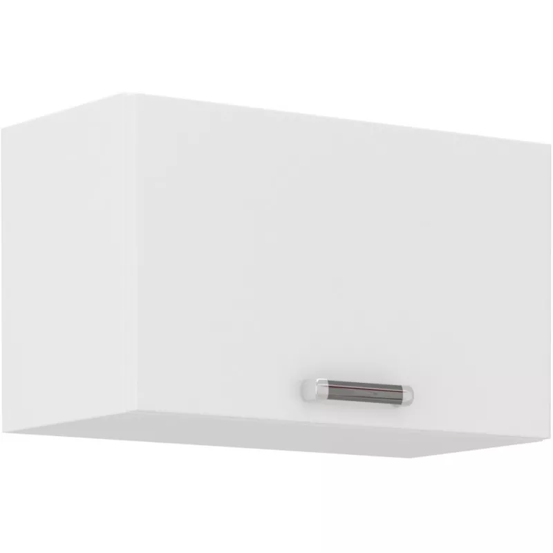 Der Küchenhängeschrank mit Flügeltüren in ansprechendem Design ist Teil der Sektorküche ODONA. Er zeichnet sich durch modische Farben und schöne Griffe aus. Die Türen werden mittels Gaskolben geöffnet.