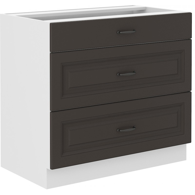 Der Küchenunterschrank mit Schubladen SOPHIA ist ein modernes Stück für die Küche. In den Schubladen können Sie eine Vielzahl von Küchenutensilien aufbewahren, von Töpfen über Teller bis hin zu Aufbewahrungsboxen. Die Küchenschränke der Serie SOPHIA sind mit einem innovativen System ausgestattet, das ein leises und sicheres Schließen der Schubladen ermöglicht.