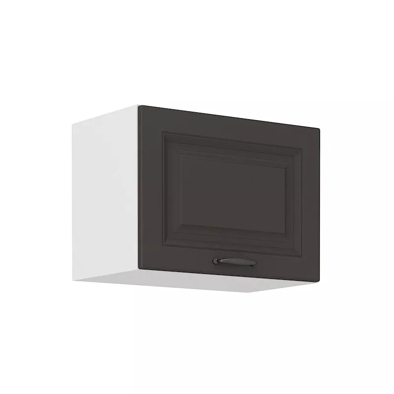 Der obere Küchenschrank mit Flügeltüren wurde für Liebhaber des klassischen Stils entworfen. Die Küche SOPHIA zeichnet sich durch modische Farben, gefräste Türen und schöne schwarze Griffe aus. Die Türen werden mittels Gaskolben geöffnet.