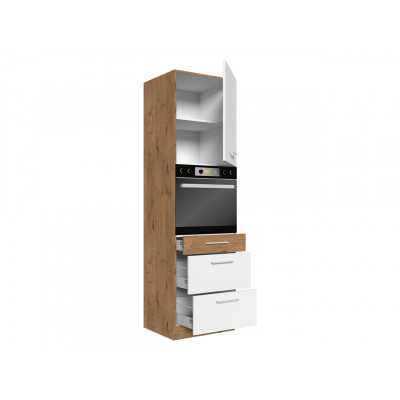 Hoher Schrank für Einbaubackofen mit Schubladen VANYA – Breite 60 cm, weiß / Eiche Lancelot