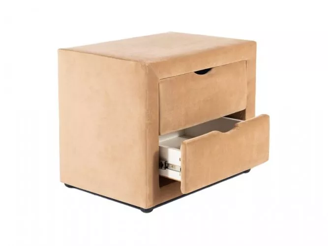 Der Nachttisch TADEO mit 2 Schubladen bietet viel Stauraum. Der Tisch ist mit Stoff bezogen, der Kratzer und Verschmutzungen an der Wand verhindert.