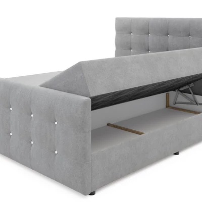 Das Doppelbett KAUR 2 eignet sich für alle modernen Schlafzimmer. Das gepolsterte Kopfteil verhindert Kratzer und Verunreinigungen an der Wand. Das Bett verfügt über 2 Stauräume, die sich unter den Klapprosten befinden.
