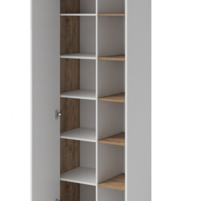 Hoher Regalschrank KASPAR – Breite 67 cm, Eiche Samdal / weiß