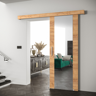 Die Salome Schiebetür mit Spiegel ist aus laminierter Platte gefertigt, die Kanten sind sorgfältig mit beständigem PVC-Furnier versehen.