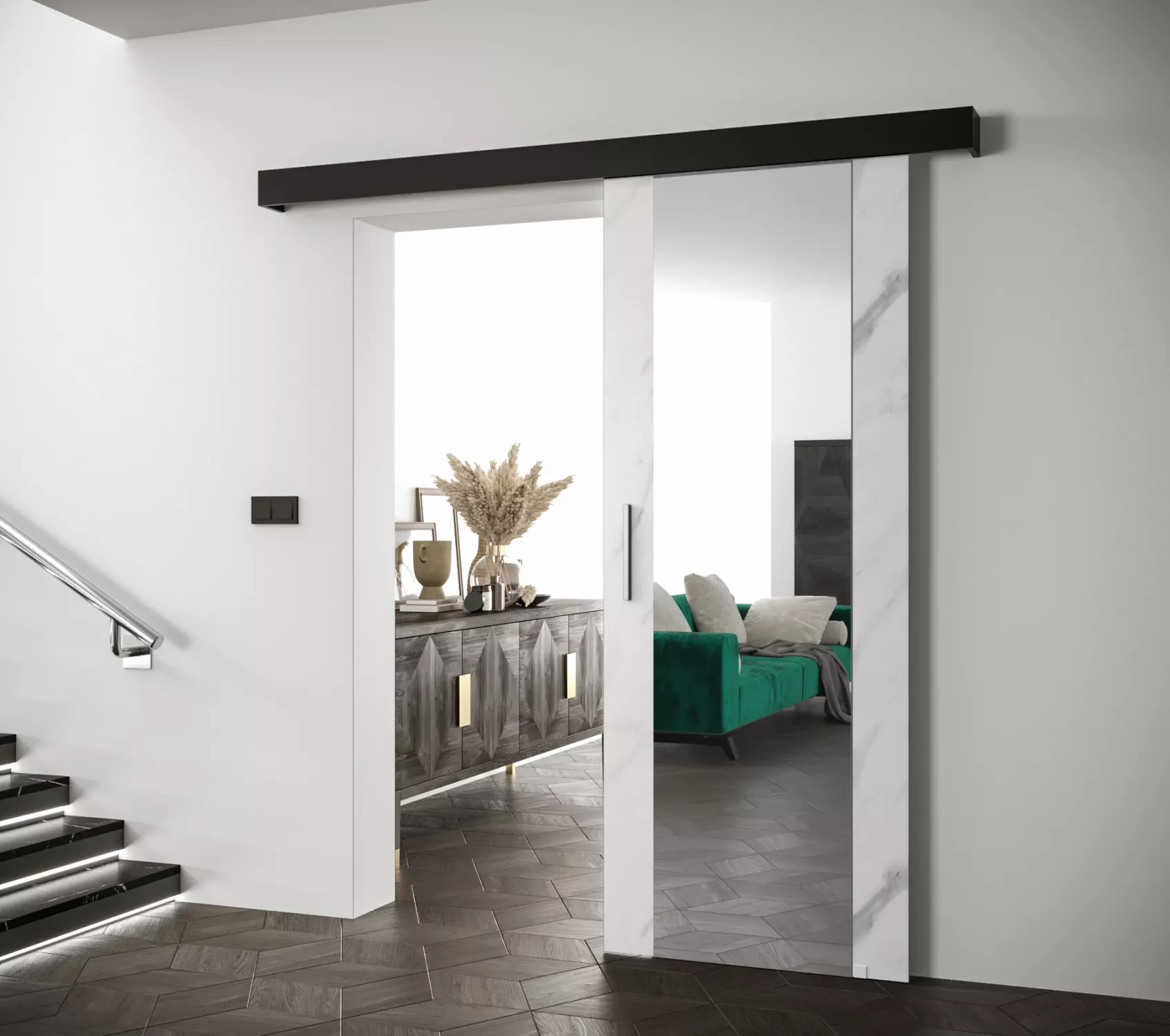 Schiebetür mit silbernem Griff SALOME 2 – weißer Marmor / schwarz