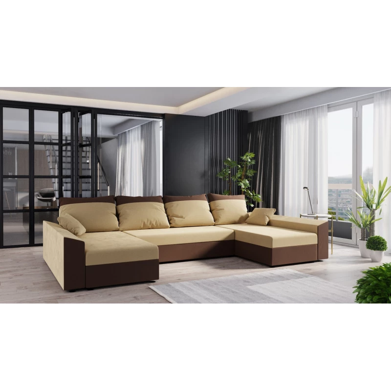 U-förmige Couchgarnitur PARI – Beige/Dunkelbraun