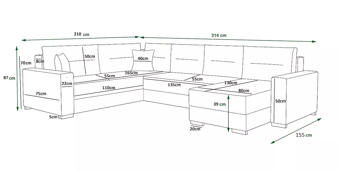 Die U-förmige Couchgarnitur VANITA ist für alle modernen Wohnzimmer geeignet. Dank der Klappfunktion können Sie das Sofa in Sekundenschnelle in ein geräumiges Bett verwandeln. Es hat einen Stauraum.