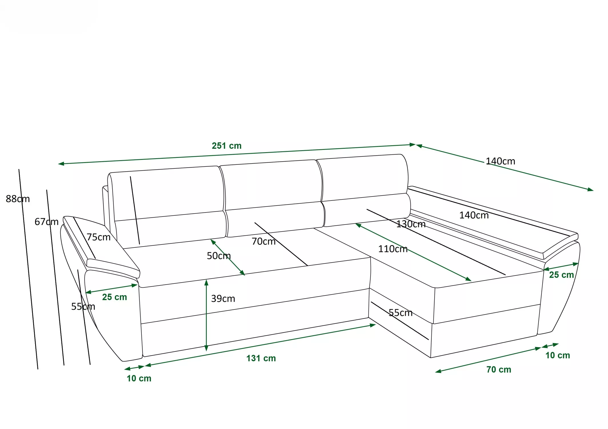 Das Ecksofa OPHELIA für den täglichen Schlaf passt in alle modernen Wohnzimmer. Dank der Klappfunktion können Sie das Sofa in Sekundenschnelle in ein geräumiges Bett verwandeln. Es hat einen Stauraum.