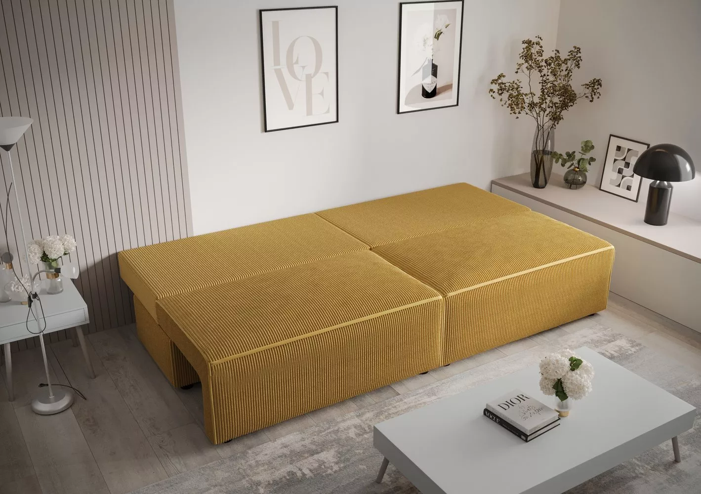 Die einfachen Linien, das schlichte Design und die stilvollen Steppung des RADANA Sofas schmücken jeden Raum. Stauraum und Ausziehfunktion sind eine Selbstverständlichkeit.