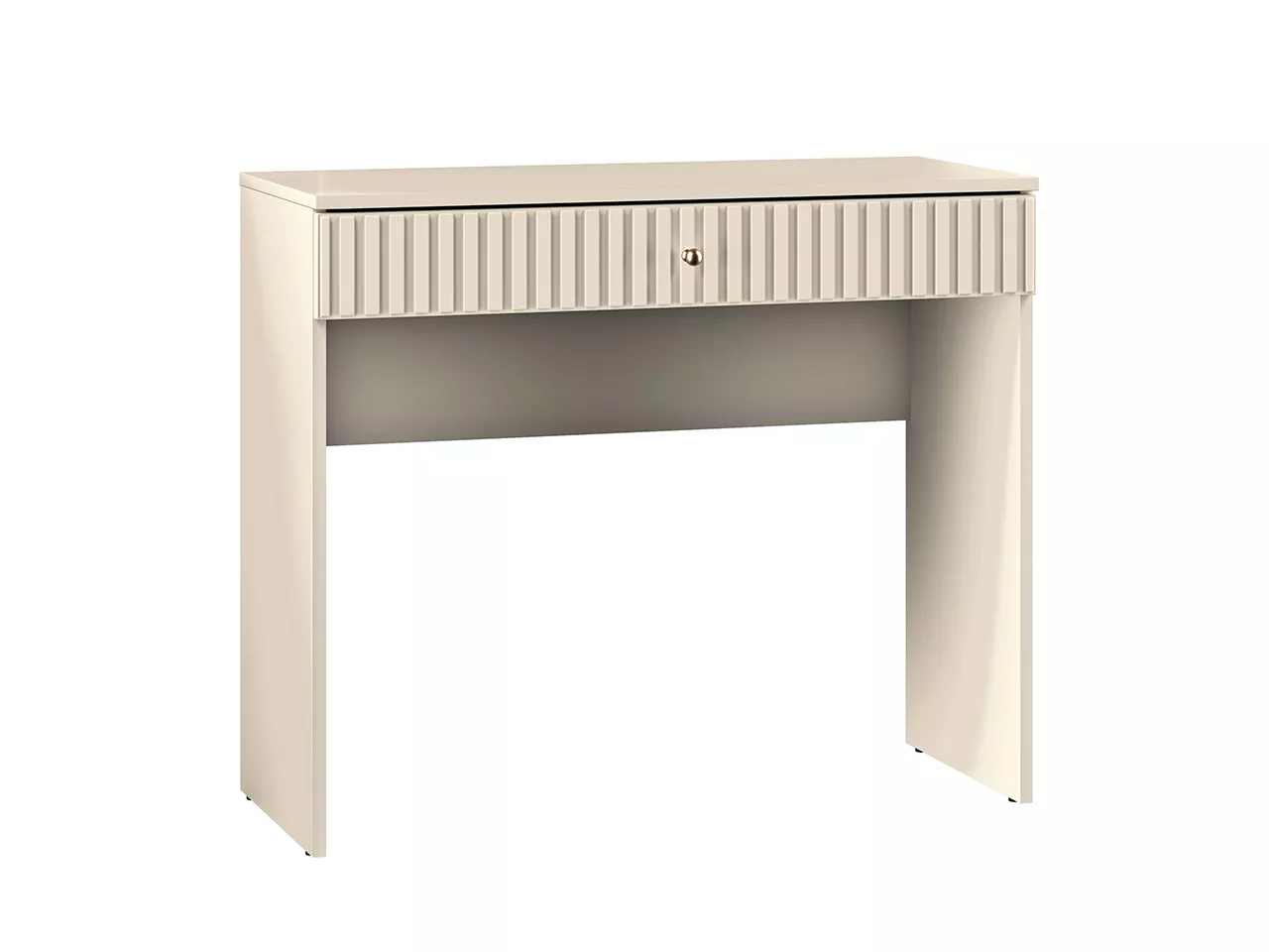 Der Schminktisch FAREL ergänzt mit seinem einzigartigen Aussehen jede moderne Einrichtung. Der Tisch kann als Schminktisch oder Schreibtisch verwendet werden. Die praktische Schublade bietet reichlich Stauraum für das notwendige Zubehör.