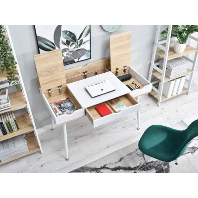 Schreibtisch mit Schublade PANDO – weiß/Sonoma-Eiche