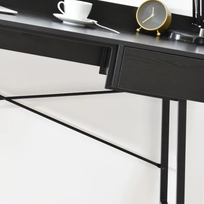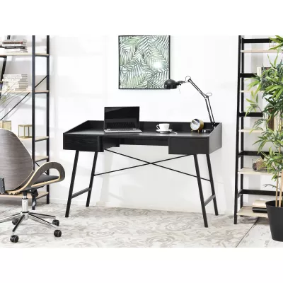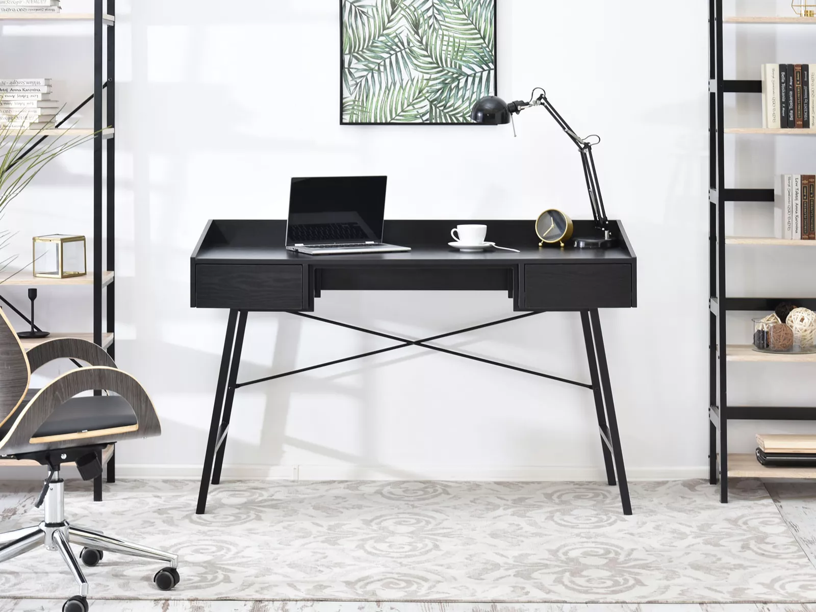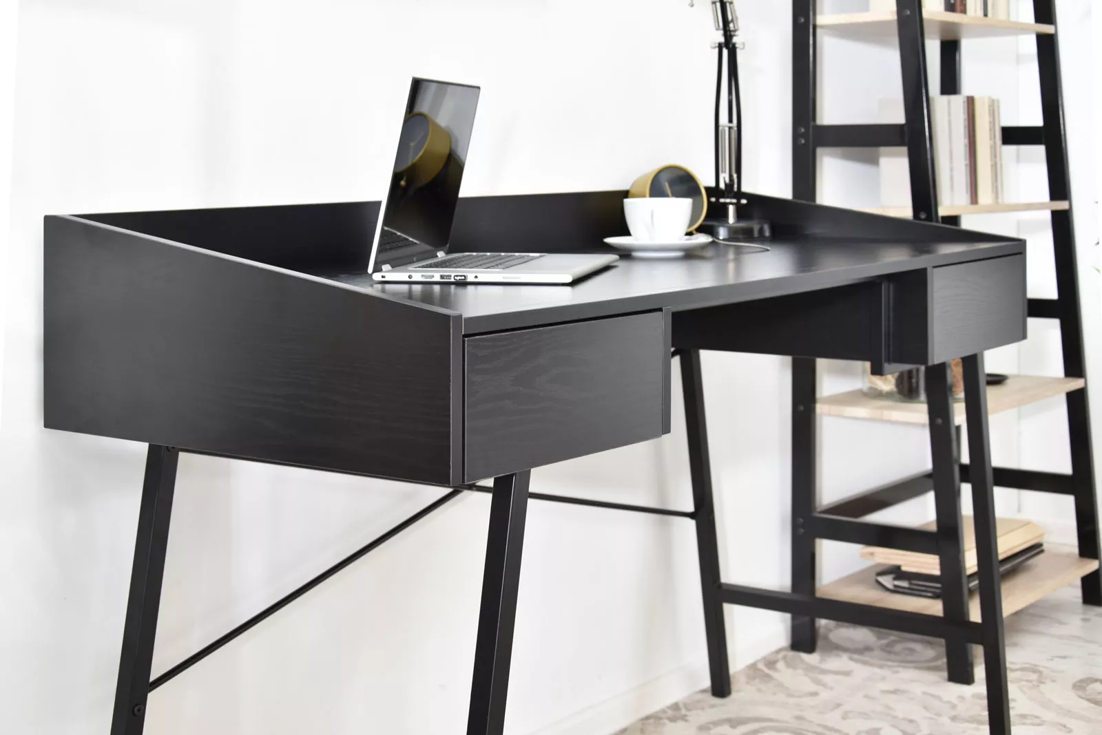 Der Schreibtisch DERYN ergänzt jedes Arbeits- oder Studierzimmer und verleiht ihm Charakter. Für genügend Beinfreiheit sorgen die an den Seiten des Tisches platzierten Schubladen.