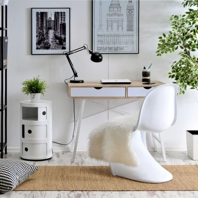 Der Schreibtisch mit Schubladen SAYER ist ein universelles Element für Arbeits-, Studier-, Schlaf- und sogar Wohnzimmer. Der Tisch besticht vor allem durch seine stabile, minimalistische Konstruktion.