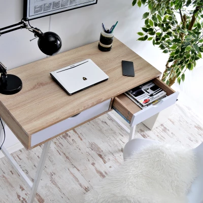 Schreibtisch mit Schubladen SAYER – weiß/Sonoma-Eiche