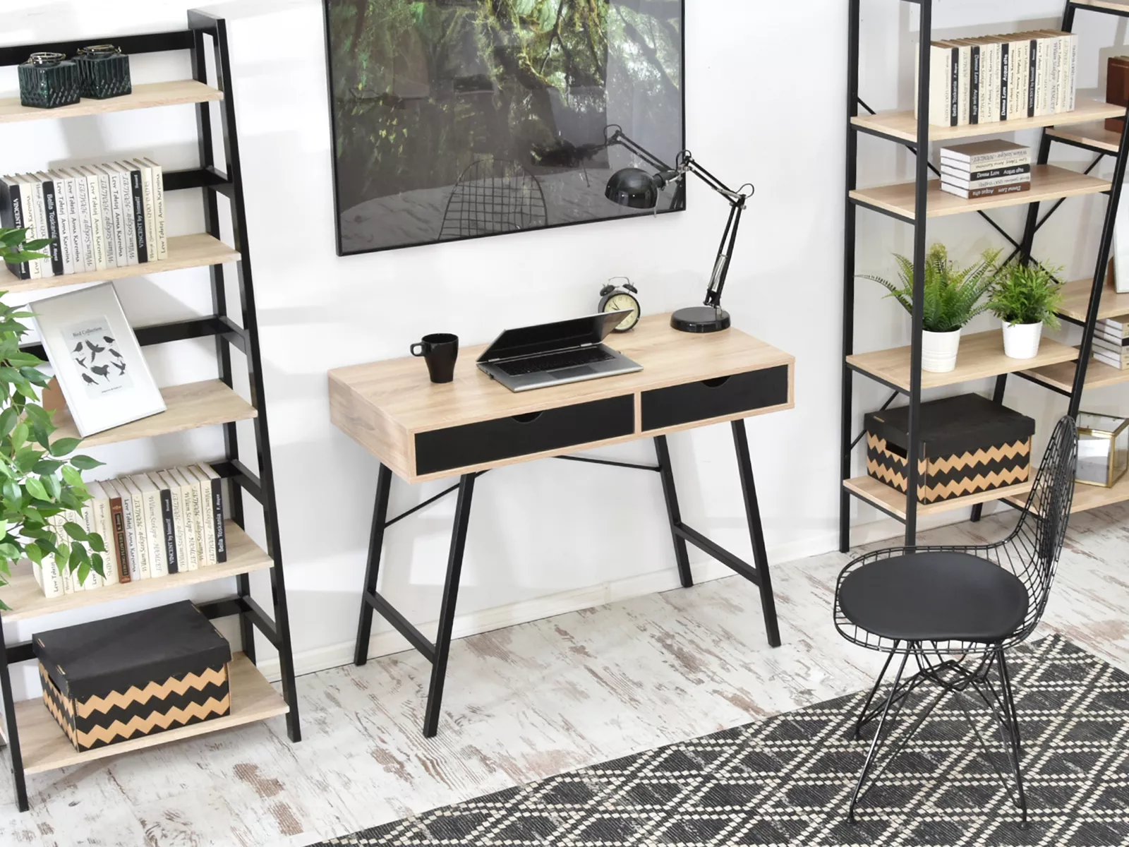Schreibtisch mit Schubladen SAYER – schwarz/Sonoma-Eiche