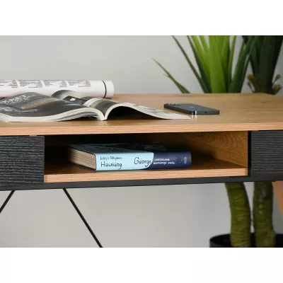 Schreibtisch mit Schubladen HELMAR – schwarz/Eiche