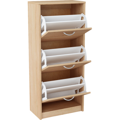 Ein geräumiger und funktioneller Schuhschrank, der in jeder Wohnung verwendet werden kann. Der Schuhschrank verfügt über 3 Schränkchen, die mit speziellen Trennwänden versehen sind, die den Raum perfekt organisieren.