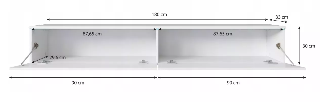Die TV-Bank CERIEE 180 ist für alle modernen Wohnzimmer geeignet. ABS-Kanten schützen das Laminat vor mechanischen Beschädigungen und Feuchtigkeit. Der Schrank verfügt über eine Flügeltür und 2 Fächer.