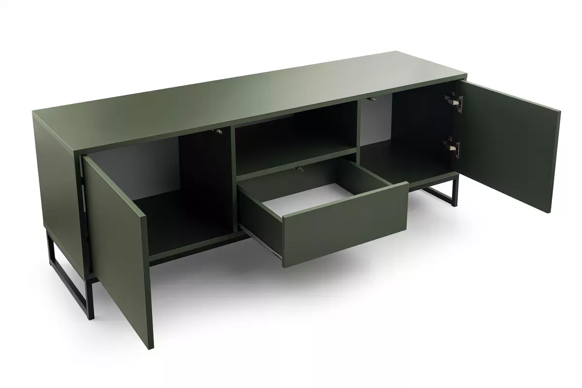 Der ZULA-Fernsehtisch ist ein funktionales Möbelstück für das Wohnzimmer. Praktische Schränke bieten Stauraum für elektronische Geräte oder anderes Zubehör.
