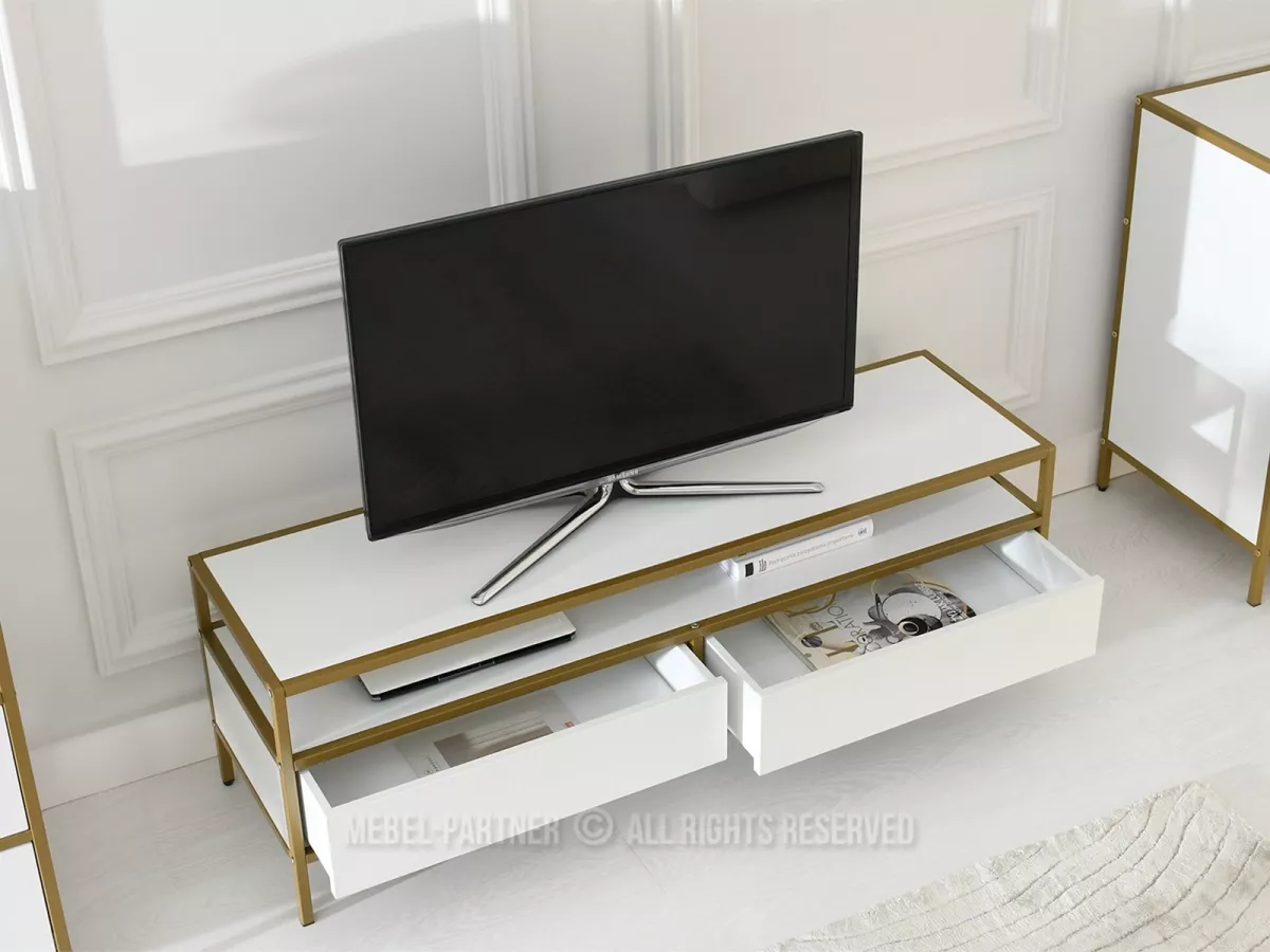 TV-Ständer MAIRA - weiß / gold