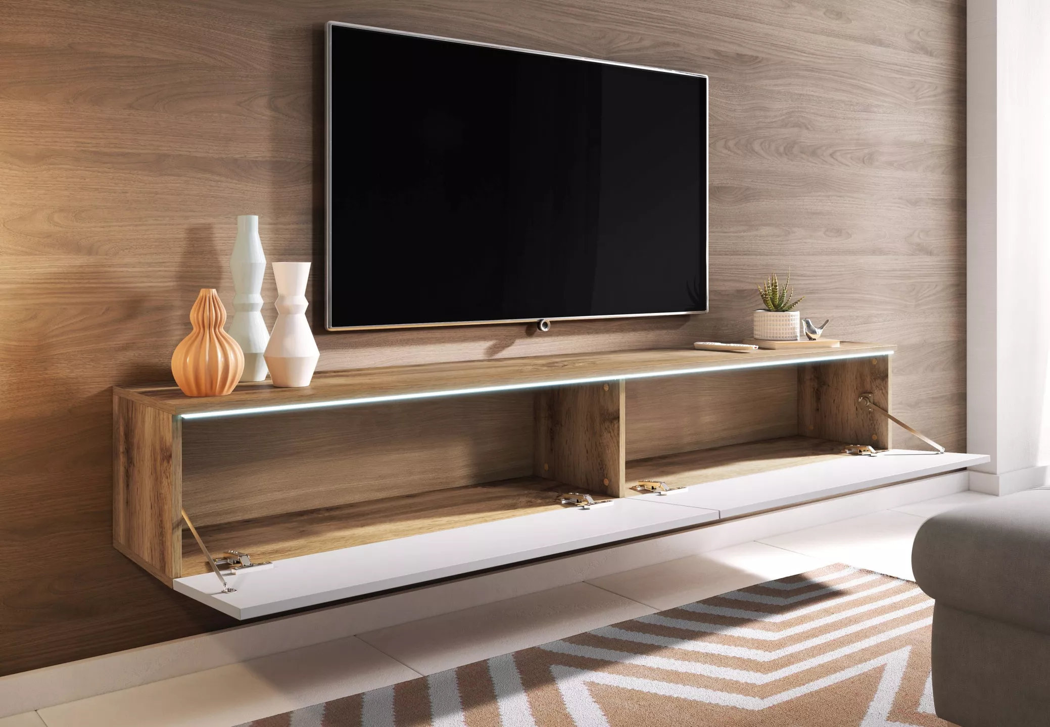 TV-Bank CERIEE 180 – Eiche Wotan / weiß glänzend