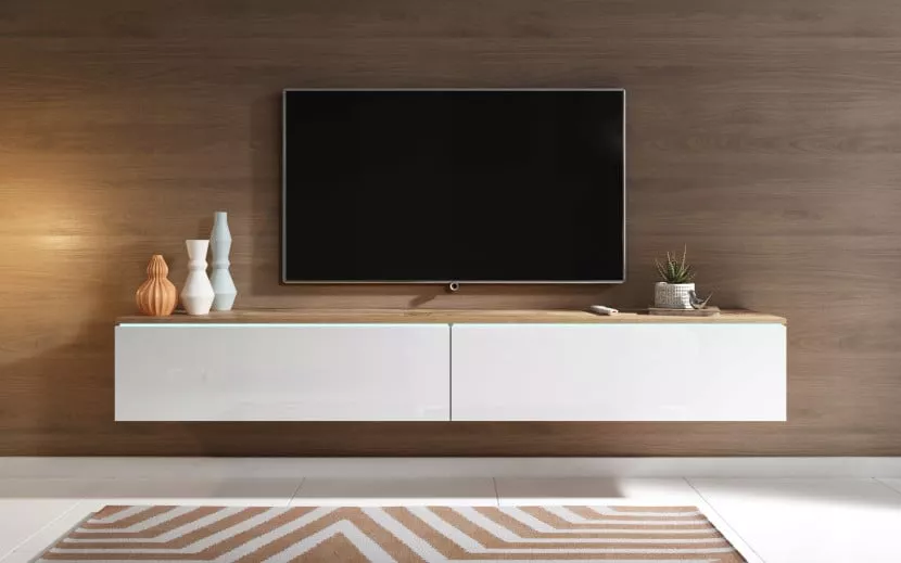 Die TV-Bank CERIEE 180 wird Sie mit ihrem originellen Design beeindrucken. Sie ist aus hochwertigem Laminat gefertigt. ABS-Kanten schützen das Laminat vor mechanischen Beschädigungen und Feuchtigkeit. Inklusive Schränkchen mit Flügeltüren, die reichlich Stauraum bieten.