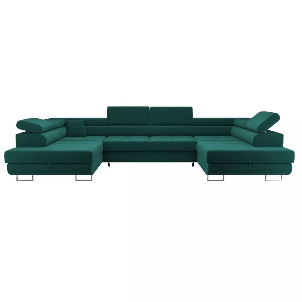 Die U-förmige Schlafcouch aus der Wilfred Kollektion hat 2 Stauräume für Bettzeug. Standard ist die Schlaffunktion. Delphin-Klappmechanismus. Kopfstützen mit 4 Verstellstufen. Hochwertiges Monolith-Gewebe, das sich angenehm anfühlt und zusätzlich mit einer hydrophoben Schicht versehen ist, die die Flüssigkeitsaufnahme reduziert. Je nach Einfallswinkel des Lichts wird das Material schattiert, was ein charakteristisches Merkmal von Veloursstoffen ist.
