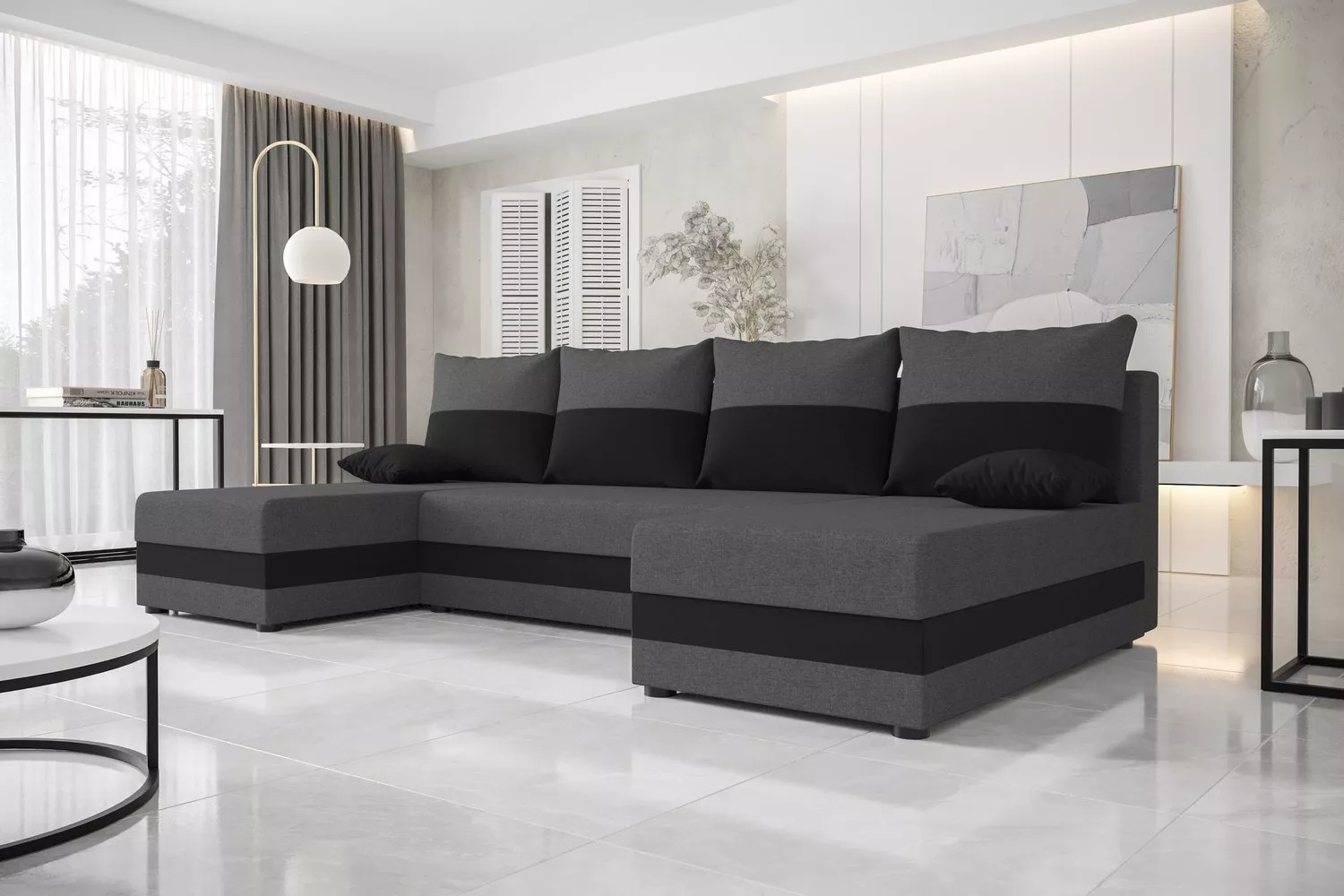Modernes U-förmiges Ecksofa HORTENZIE – grau / schwarz