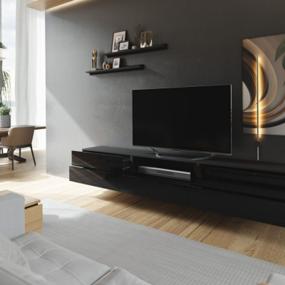 Wohnzimmermöbel Bradt 28 sind ein Set, das ein modernes Interieur ergänzt. Die Wohnwand hat keine herkömmlichen Griffe, sie wurden durch das Öffnungssystem PUSH TO OPEN ersetzt. Sie können die Schränke an der Wand aufhängen oder Beine dazu bestellen und sie auf den Boden stellen.