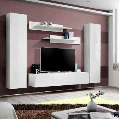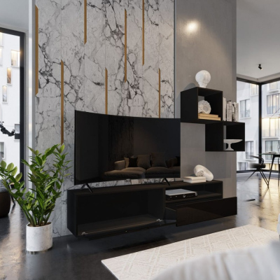 Wohnzimmermöbel Bradt 29 sind ein Set, das ein modernes Interieur ergänzt. Die Wohnwand hat keine herkömmlichen Griffe, sie wurden durch das Öffnungssystem PUSH TO OPEN ersetzt. Sie können die Schränke an der Wand aufhängen oder Beine dazu bestellen und sie auf den Boden stellen.