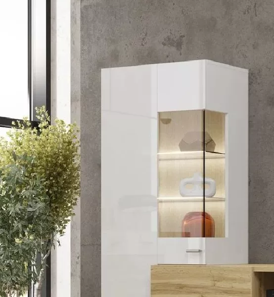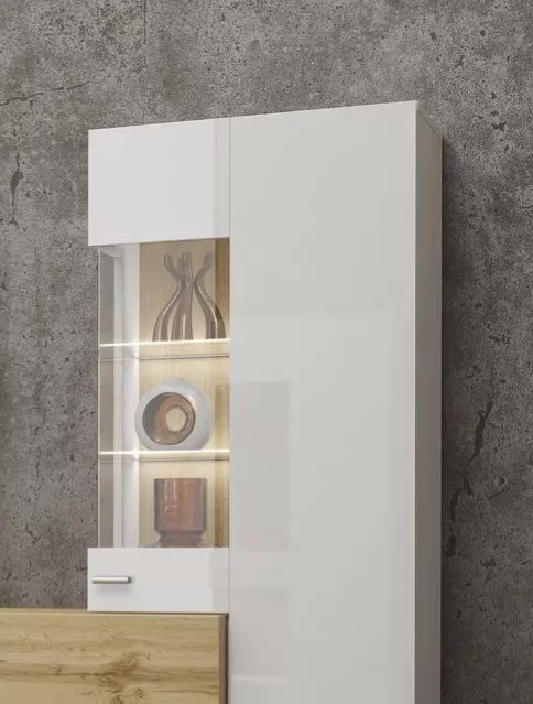 Wohnwand NIKOL – weiß / weiß glänzend / Wotan